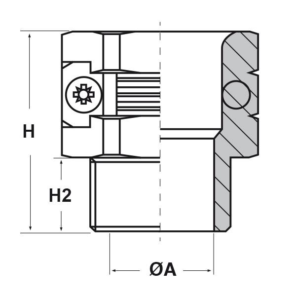 ARTICOLO | filetto passo | filetto valore | Ø est. cavo min - max mm | chiave mm | ØA mm | H2 mm | confezione pz. | |