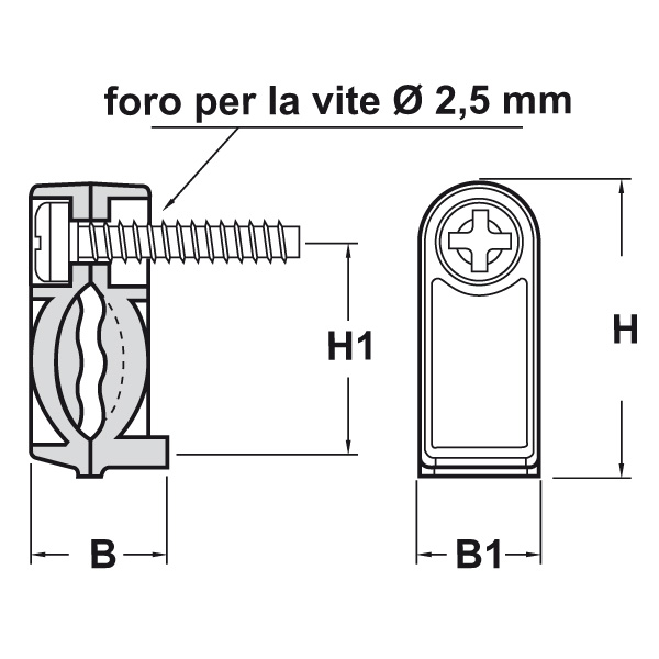 Caratteristiche: questi bloccacavi vengono fissati a parete per mezzo della vite autofilettante in metallo, fornita separatamente insieme ai bloccacavi.