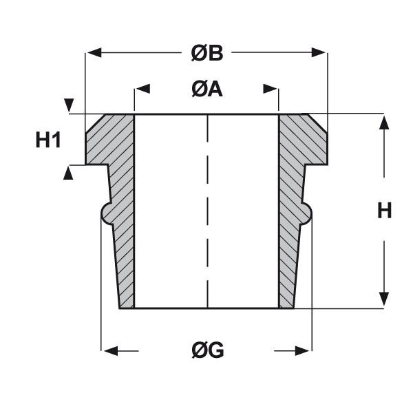 ARTICOLO | colore | materiale | ØA mm | ØB mm | ØG mm | H mm | H1 mm | confezione pz. |