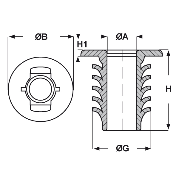 ARTICOLO | ØA mm | ØB mm | ØG mm | H mm | H1 mm | confezione pz. | |