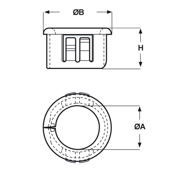 ARTICOLO | ØA mm | ØB mm | H mm | spessore telaio max mm | Ø foro montaggio mm | confezione pz. |