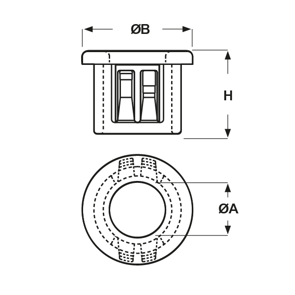 ARTICOLO | ØA mm | ØB mm | H mm | spessore telaio max mm | Ø foro montaggio mm | confezione pz. |