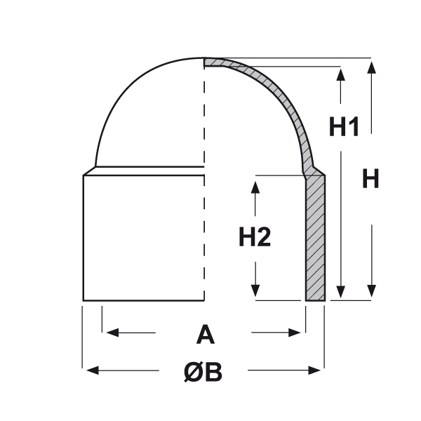 ARTICOLO | A mm | ØB mm | H mm | H1 mm | H2 mm | adatto a filetto Metrico | esagono | confezione pz. | |