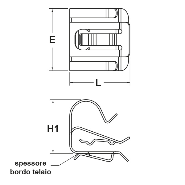 ARTICOLO | n. cavi/Ø est. cavo min - max mm | spessore bordo telaio min - max mm | profondità bordo telaio min mm | L mm | E mm | H1 mm | confezione pz. | |