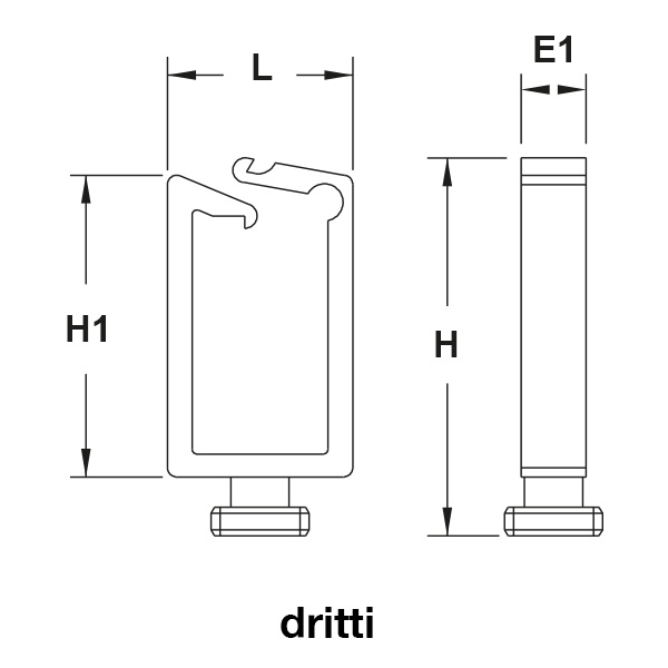 Il disegno è indicativo e le proporzioni potrebbero non corrispondere alle dimensioni in tabella o reali.