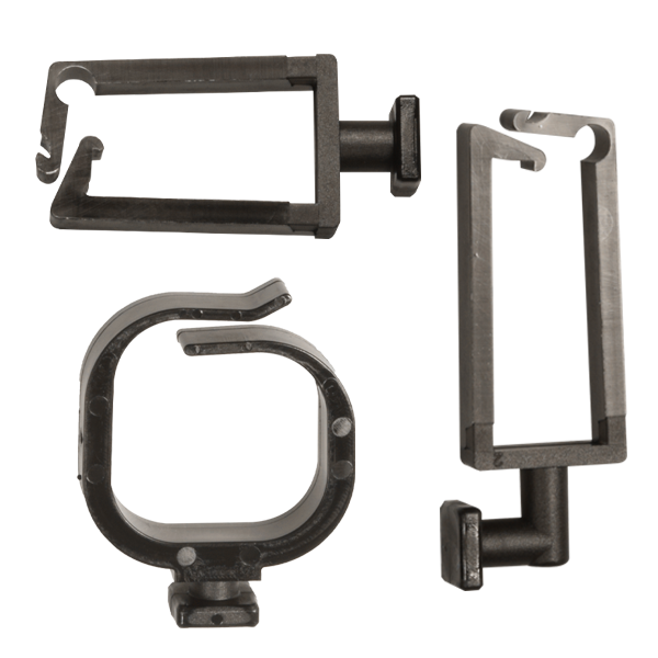 Caratteristiche: i ferma-cavi modulari si assemblano con le clip per bordo telaio tipo CMF-CM e con le clip per profilati strutturali tipo CPS-CM e consentono di fissare e organizzare cavi e fasci di cavi di varie dimensioni. Sono dotati di una base quadrata che va agganciata alle clip e, a seconda del verso di aggancio, consentono di posizionare i cavi parallelamente o perpendicolarmente alla struttura. Possono essere facilmente sganciati dalle clip per modificarne il verso o per un'eventuale sostituzione con un altro tipo di ferma-cavo modulare. Come vedasi in tabella, questi ferma-cavi sono disponibili sia in versione dritta che a 90°. I lembi superiori (con l’esclusione del ferma-cavo 15150) possono essere chiusi per evitare che i cavi fuoriescano, ma possono essere riaperti per aggiunte o sostituzioni. Essendo realizzati in poliammide 66 stabilizzato e resistente al calore e ai raggi UV, sono adatti all'uso in ambienti esterni, come gli impianti solari. Inoltre, isolano i cavi dalle superfici fotovoltaiche e dalle strutture.