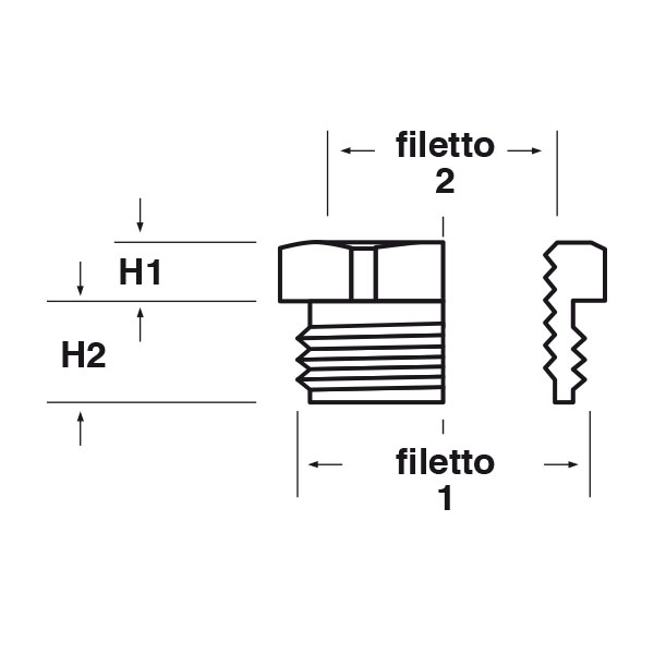 ARTICOLO | filetto passo 1 | filetto valore 1 | filetto passo 2 | filetto valore 2 | chiave mm | H1 mm | H2 mm | confezione pz. | |