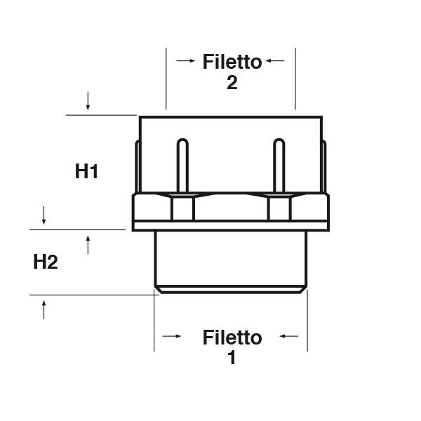 ARTICOLO | filetto passo 1 | filetto valore 1 | filetto passo 2 | filetto valore 2 | chiave mm | H1 mm | H2 mm | confezione pz. | |