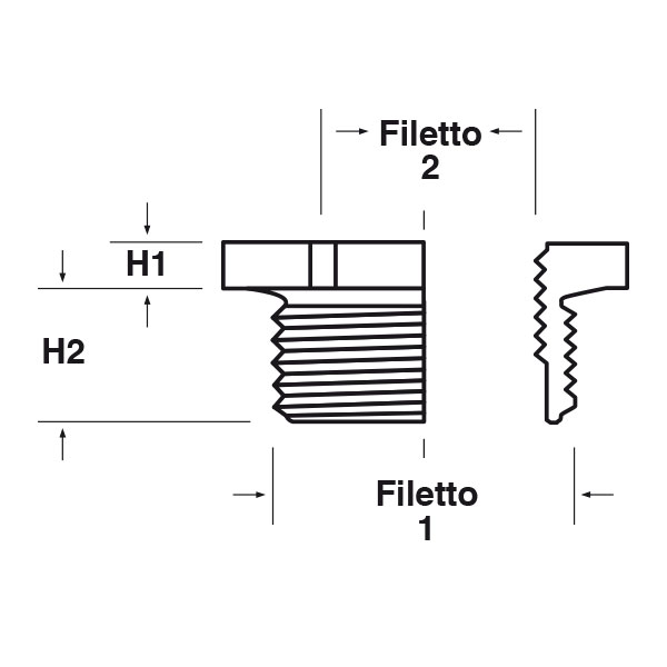 ARTICOLO | filetto passo 1 | filetto valore 1 | filetto passo 2 | filetto valore 2 | chiave mm | H1 mm | H2 mm | confezione pz. | |