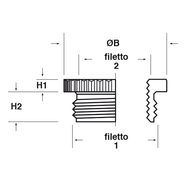 ARTICOLO | filetto passo 1 | filetto valore 1 | filetto passo 2 | filetto valore 2 | ØB mm | H1 mm | H2 mm | confezione pz. | |