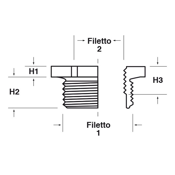 ARTICOLO | colore | filetto passo 1 | filetto valore 1 | filetto passo 2 | filetto valore 2 | chiave mm | H1 mm | H2 mm | H3 mm | confezione pz. |