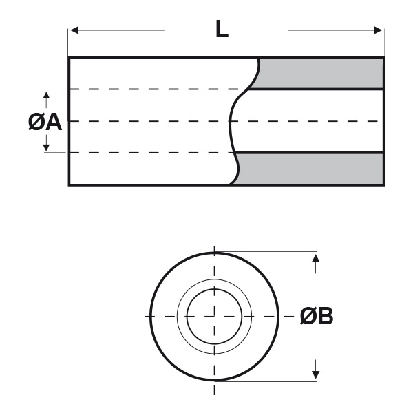 Distanziatori metallo cilindrici, foro passante TL10 R - ELEKTROZUBEHÖR