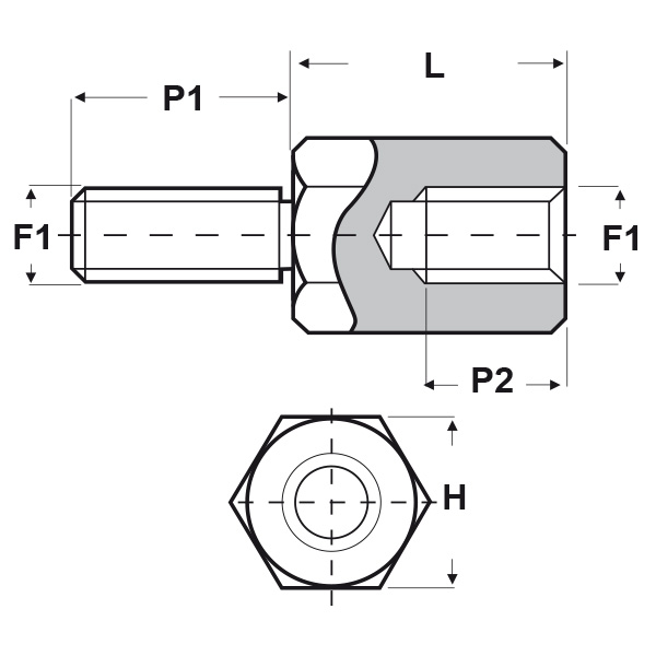 ARTICOLO | filetto passo F1 | filetto valore F1 | H mm | L mm | P1 mm | P2 min mm | confezione pz. | |