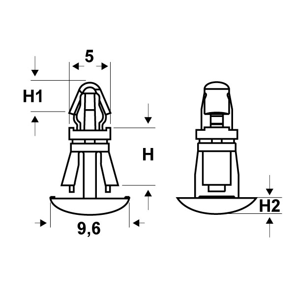 ARTICOLO | H mm | H1 mm | H2 mm | spessore telaio super. / infer. | ø foro di montaggio superiore mm | ø foro di montaggio inferiore mm | confezione pz. | |