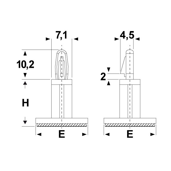 ARTICOLO | H mm | E mm | spessore telaio superiore mm | ø foro di montaggio superiore mm | confezione pz. | |