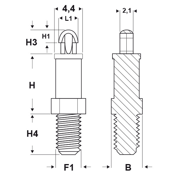 ARTICOLO | colore | materiale | ø foro di montaggio superiore mm | spessore telaio superiore mm | filetto passo F1 | filetto valore F1 | H mm | B mm | H1 mm | H3 mm | H4 mm | L1 mm | confezione pz. | |