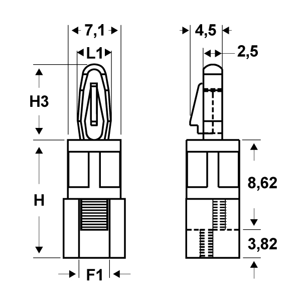 ARTICOLO | filetto passo F1 | filetto valore F1 | H mm | H3 mm | L1 mm | spessore telaio mm | ø foro di montaggio superiore mm | confezione pz. | |