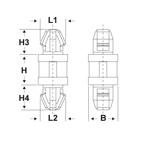 ARTICOLO | ø foro di montaggio superiore mm | spessore telaio superiore mm | ø foro di montaggio inferiore mm | spessore telaio inferiore mm | B mm | H mm | H3 mm | H4 mm | L1 mm | L2 mm | confezione pz. | |