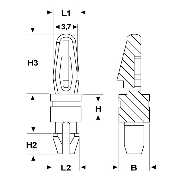 ARTICOLO | ø foro di montaggio superiore mm | spessore telaio superiore mm | ø foro di montaggio inferiore mm | spessore telaio inferiore mm | B mm | H mm | H2 mm | H3 mm | H4 mm | L1 mm | L2 mm | confezione pz. | |
