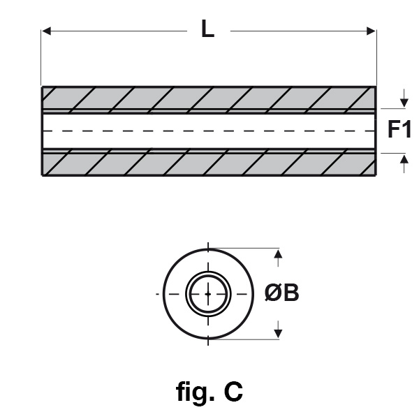 ARTICOLO | colore | specifica | filetto passo F1 | filetto valore F1 | filetto passo F2 | filetto valore F2 | ØB mm | L mm | P1 mm | confezione pz. | |