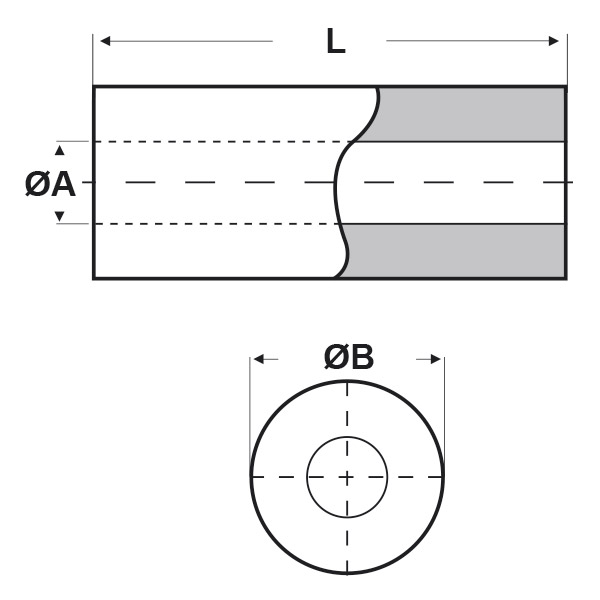 ARTICOLO | materiale | ØA mm | ØB mm | L mm | confezione pz. |