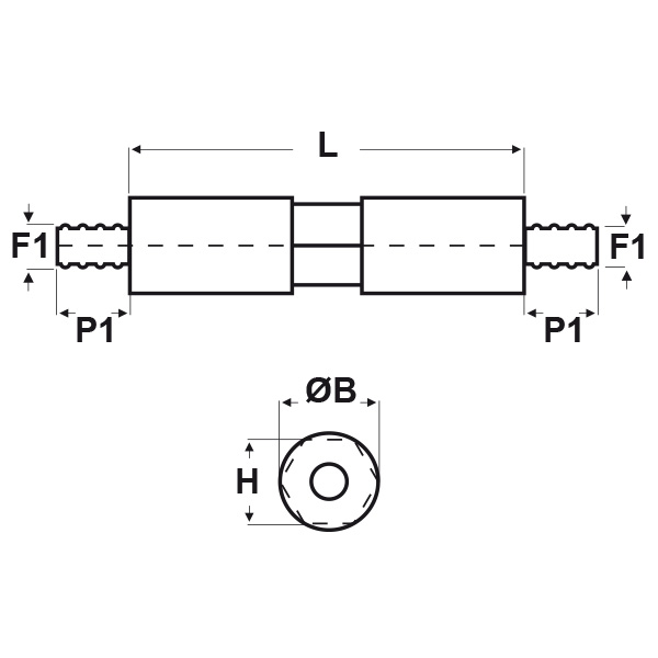 ARTICOLO | filetto passo F1 | filetto valore F1 | ØB mm | H mm | L mm | P1 mm | confezione pz. | |