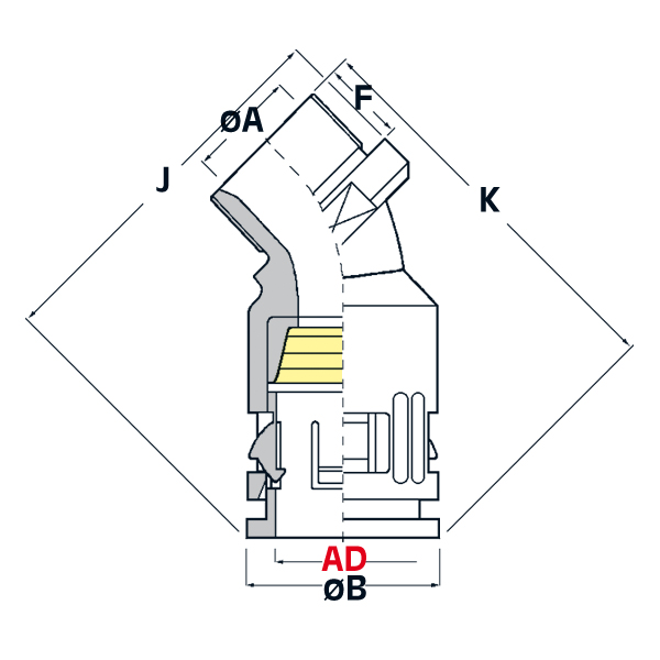 ARTICOLO | Ø esterno tubo AD | filetto passo | filetto valore | ØA mm | ØB mm | F mm | K mm | J mm | chiave mm | confezione pz. | |