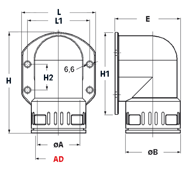 ARTICOLO | colore | Ø esterno tubo AD | ØA mm | ØB mm | H mm | E mm | L mm | L1 mm | H1 mm | H2 mm | confezione pz. | |