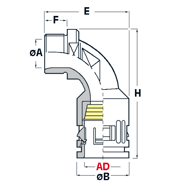 ARTICOLO | colore | Ø esterno tubo AD | filetto passo | filetto valore | ØA mm | ØB mm | F mm | H mm | E mm | chiave mm | confezione pz. | |