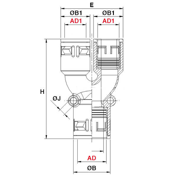 ARTICOLO | colore | Ø esterno tubo AD | Ø esterno tubo AD1 | ØB mm | ØB1 mm | H mm | E mm | ØJ mm | confezione pz. | |