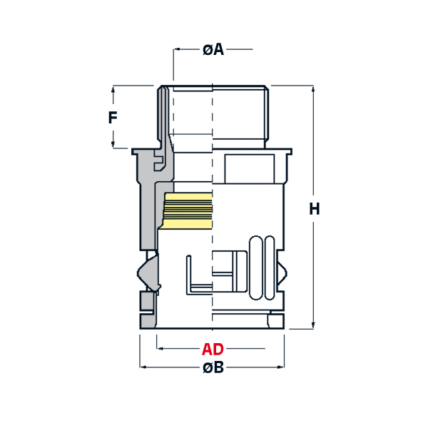 ARTICOLO | Ø esterno tubo AD | filetto passo | filetto valore | ØA mm | ØB mm | F mm | H mm | chiave mm | confezione pz. | |