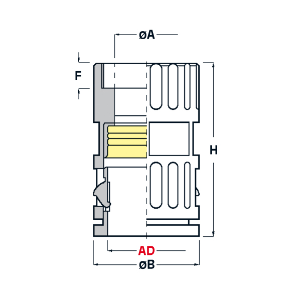 ARTICOLO | colore | Ø esterno tubo AD | filetto passo | filetto valore | ØA mm | ØB mm | F mm | H mm | chiave mm | confezione pz. | |
