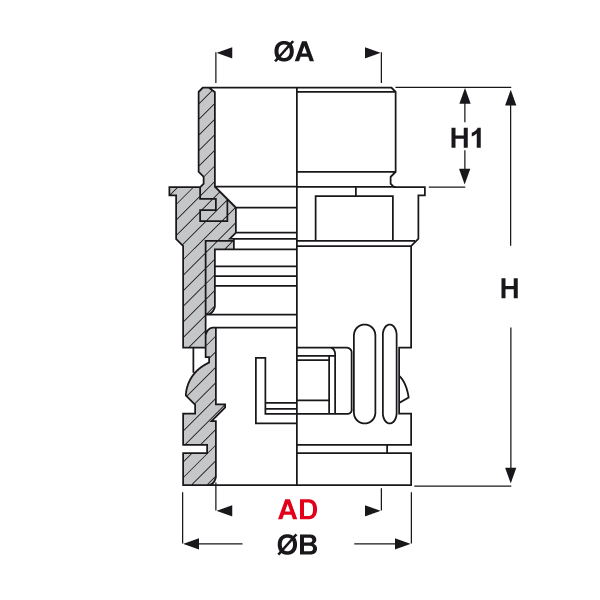 ARTICOLO | colore | Ø esterno tubo AD | Ø tubo mm | ØA mm | ØB mm | H mm | H1 mm | chiave mm | confezione pz. | |