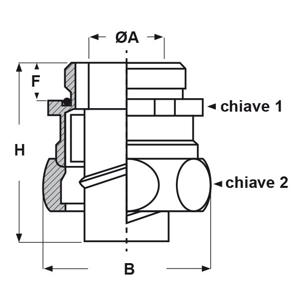 ARTICOLO | Ø esterno tubo AD | filetto passo | filetto valore | ØA mm | B mm | F mm | H mm | chiave 1 mm | chiave 2 mm | confezione pz. | |