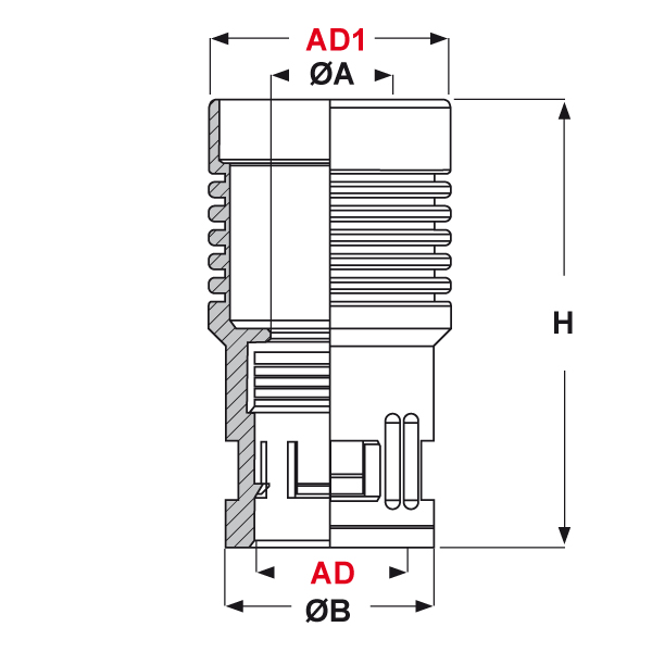 ARTICOLO | Ø esterno tubo AD | Ø esterno tubo AD1 | ØA mm | ØB mm | H mm | confezione pz. | |