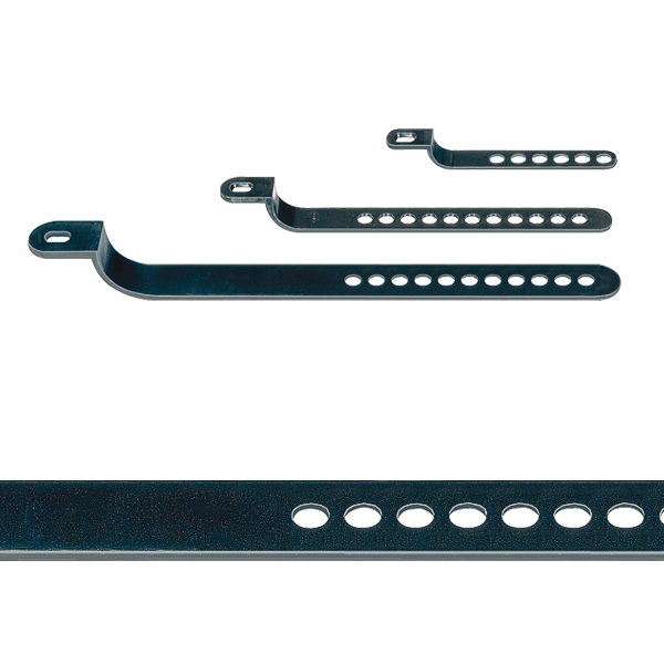 Caratteristiche: con soltanto 3 misure, questi collarini serrano una vasta gamma di diametri di cavi o fasci di cavi, da un minimo di Ø 6 ad un massimo di Ø 50 mm. Hanno una buona resistenza meccanica ed un’eccellente resistenza alla corrosione. Si fissano su pannelli tramite viti.