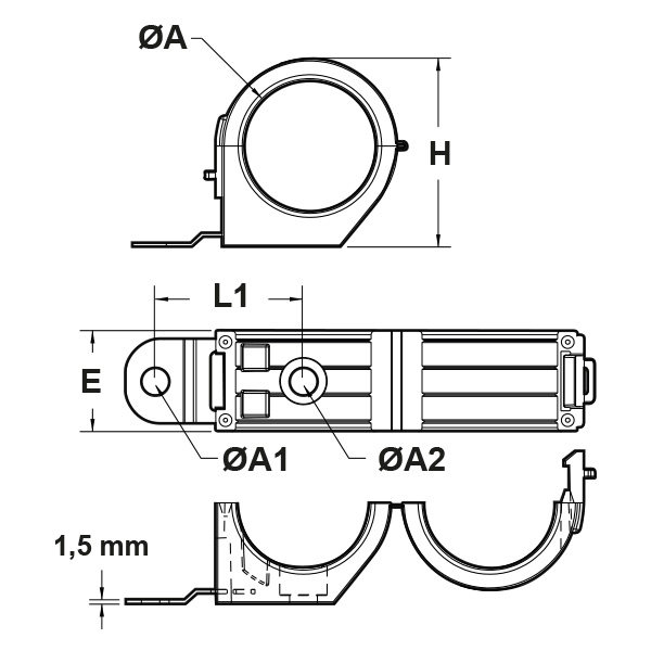 ARTICOLO | specifica | ØA mm | ØA1 mm | ØA2 mm | H mm | E mm | L1 mm | confezione pz. | |