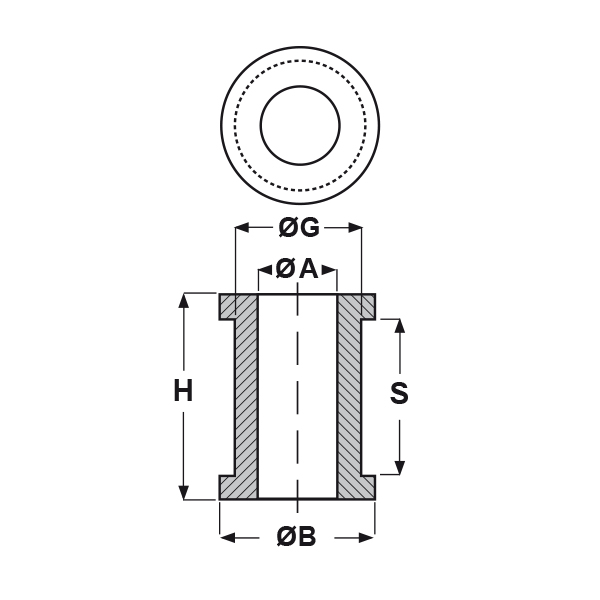 ARTICOLO | ØA mm | ØG mm | S mm | ØB mm | H mm | confezione pz. | |