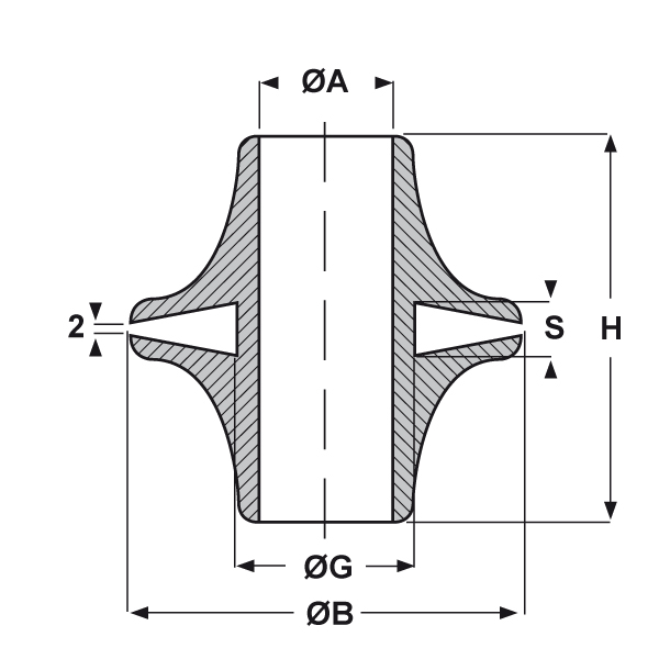 ARTICOLO | ØA mm | ØG mm | S mm | ØB mm | H mm | confezione pz. | |