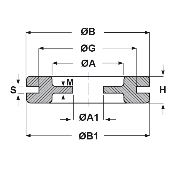ARTICOLO | ØA mm | ØG mm | S mm | ØA1 mm | ØB mm | ØB1 mm | H mm | M mm | confezione pz. |