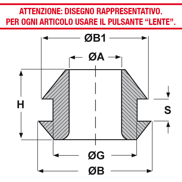 ARTICOLO | ØA mm | ØG mm | S mm | ØB mm | ØB1 mm | H mm | confezione pz. | |