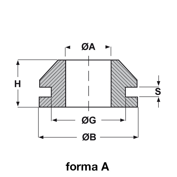 ARTICOLO | specifica | ØA mm | ØG mm | S mm | ØB mm | H mm | confezione pz. |