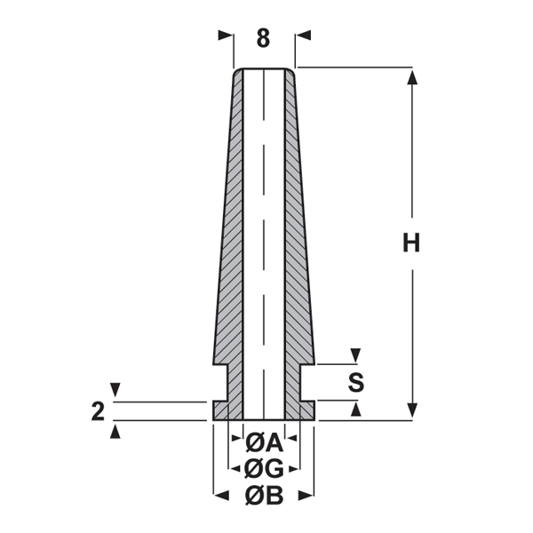 ARTICOLO | materiale | ØA mm | ØB mm | ØG mm | H mm | S mm | confezione pz. |
