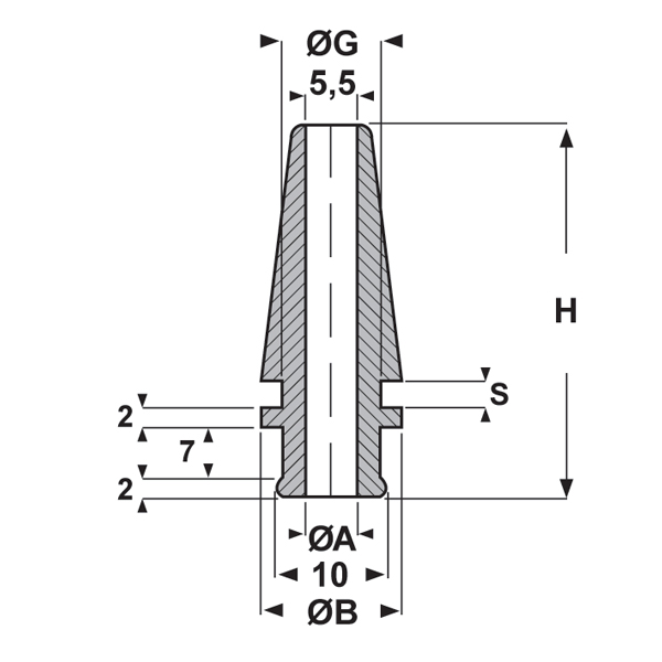 ARTICOLO | materiale | ØA mm | ØB mm | ØG mm | H mm | S mm | confezione pz. |
