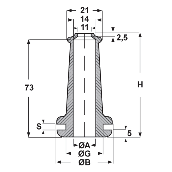 ARTICOLO | materiale | ØA mm | ØB mm | ØG mm | H mm | S mm | confezione pz. |
