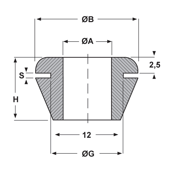ARTICOLO | materiale | ØA mm | ØB mm | ØG mm | H mm | S mm | confezione pz. |