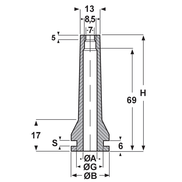 ARTICOLO | materiale | ØA mm | ØB mm | ØG mm | H mm | S mm | confezione pz. |
