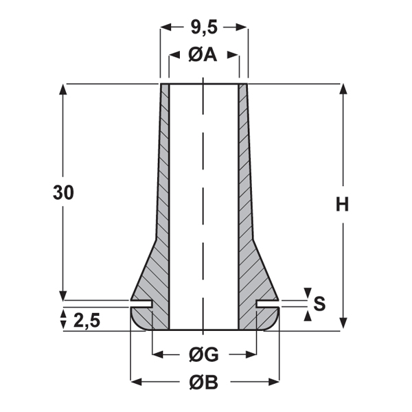 ARTICOLO | materiale | ØA mm | ØB mm | ØG mm | H mm | S mm | confezione pz. |