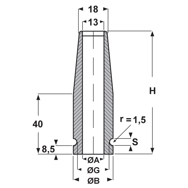 ARTICOLO | materiale | ØA mm | ØB mm | ØG mm | H mm | S mm | confezione pz. |