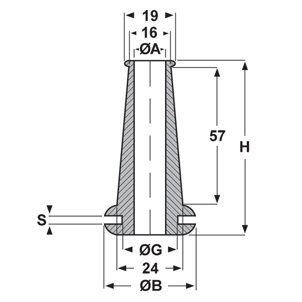 ARTICOLO | materiale | ØA mm | ØB mm | ØG mm | H mm | S mm | confezione pz. |